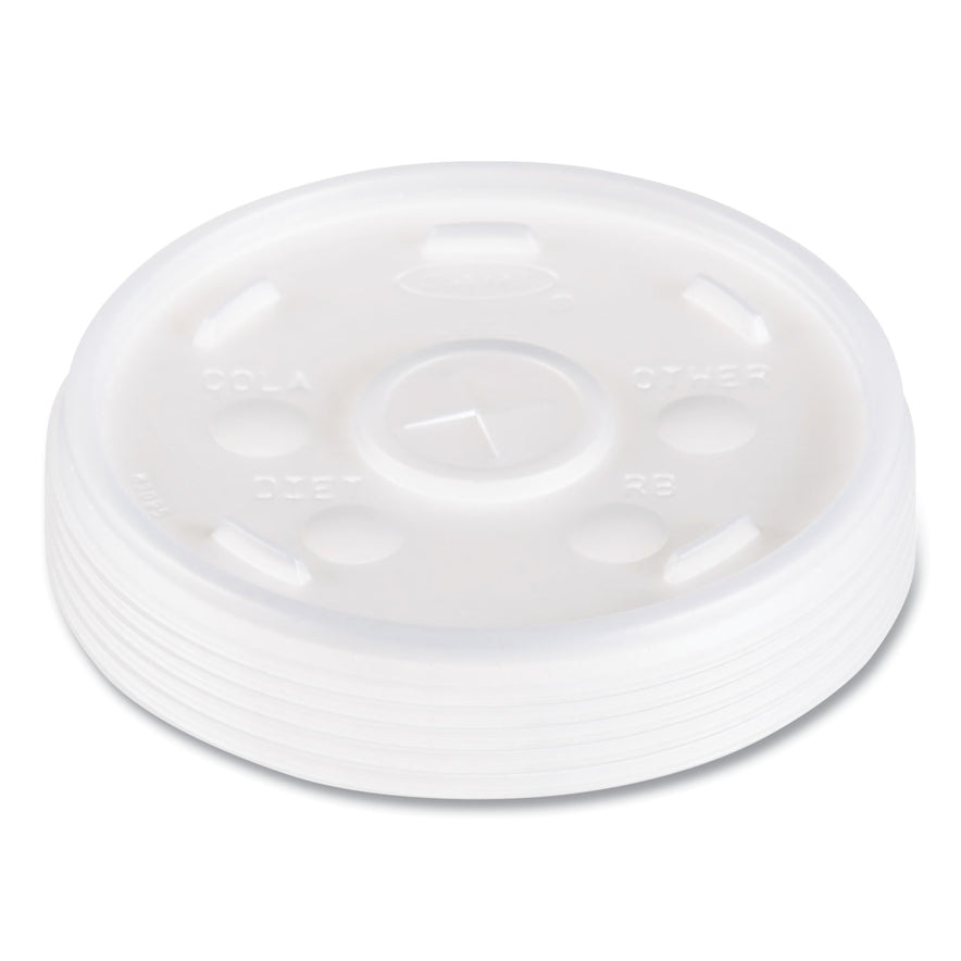 Dart Plastic Lids, Fits 12 oz to 24 oz Hot/Cold Foam Cups, Straw-Slot Lid, White, 100/Pack, 10 Packs/Carton (16SL)
