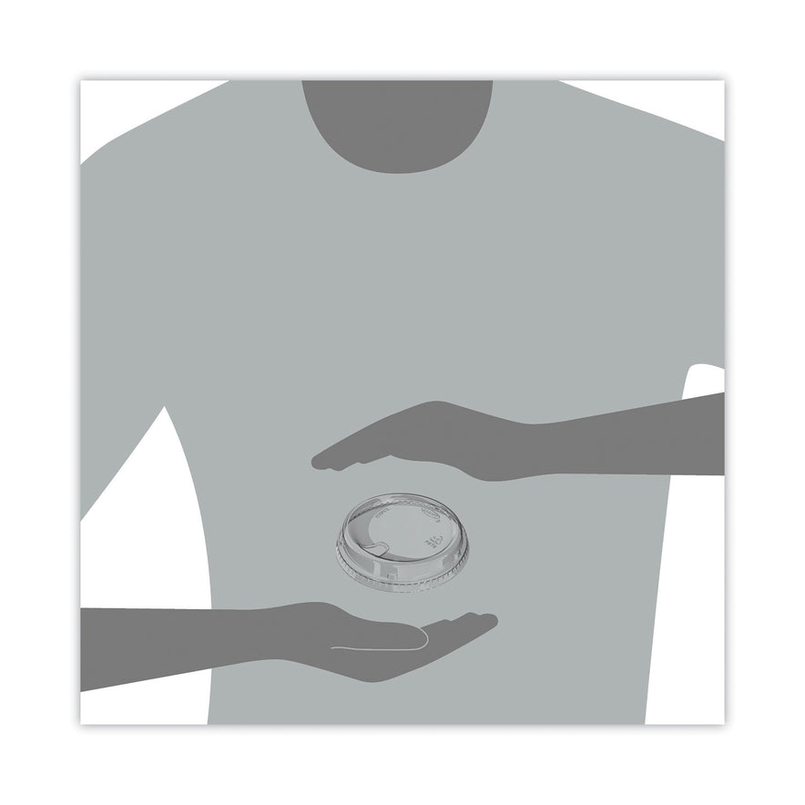 The perfect solution to going strawless. Specially designed recessed sip hole allows liquid to flow while holding ice cubes back. Features an elevated platform which allows extra room for toppings. Angled reservoir contains spills on the lid and diverts liquids back into the cup. One lid fits the five most popular cold cup sizes, reducing inventory and increasing operational efficiencies. Fits: 12 oz to 26 oz Cold Cups; Material(s): PET; Color(s): Clear; Color Family: Clear.
