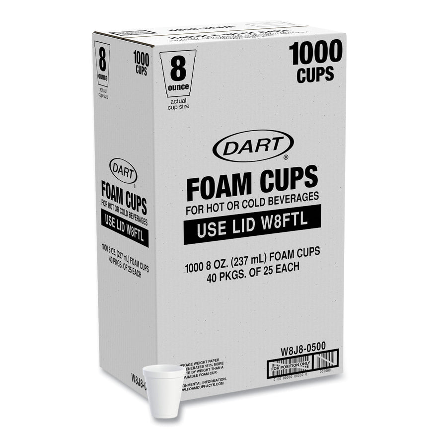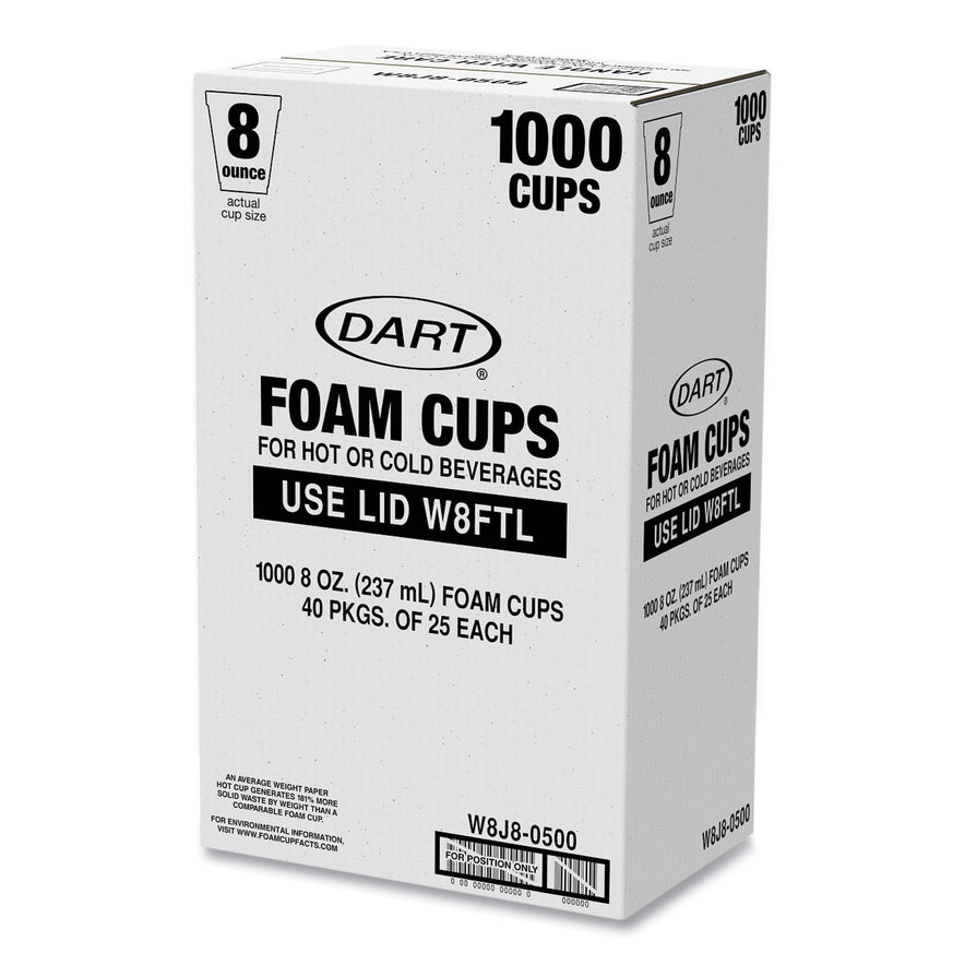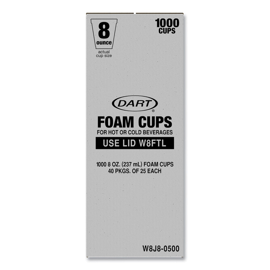 Dart Foam Drink Cups, 8 oz, White, 25/Bag, 40 Bags/Carton (W8J8S)