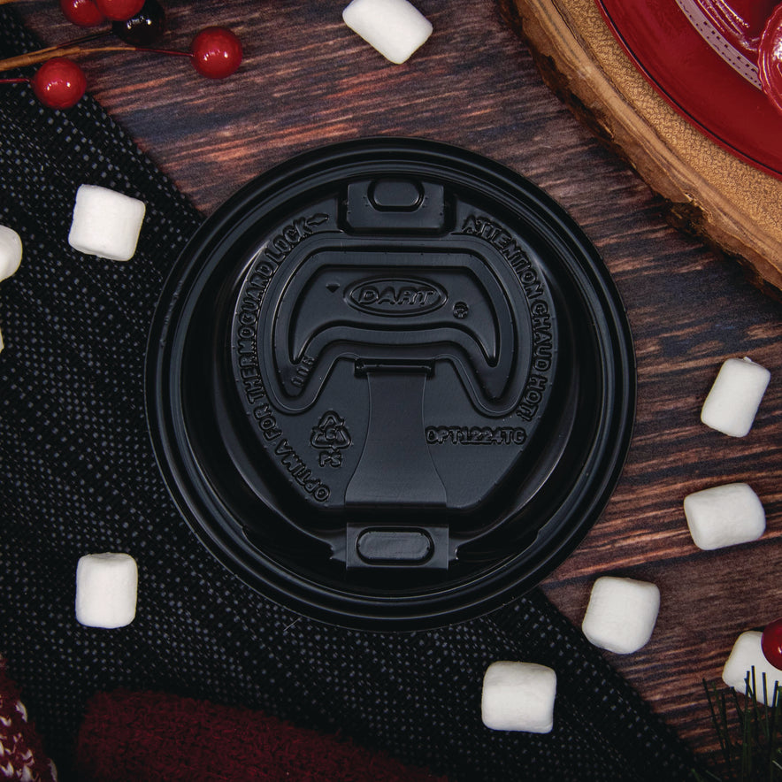 Dart Optima Reclosable Lids for Hot Paper Cups, 12 oz to 24 oz Hot Paper Cups, Black, 1,200/Carton (OPT1224TGB)