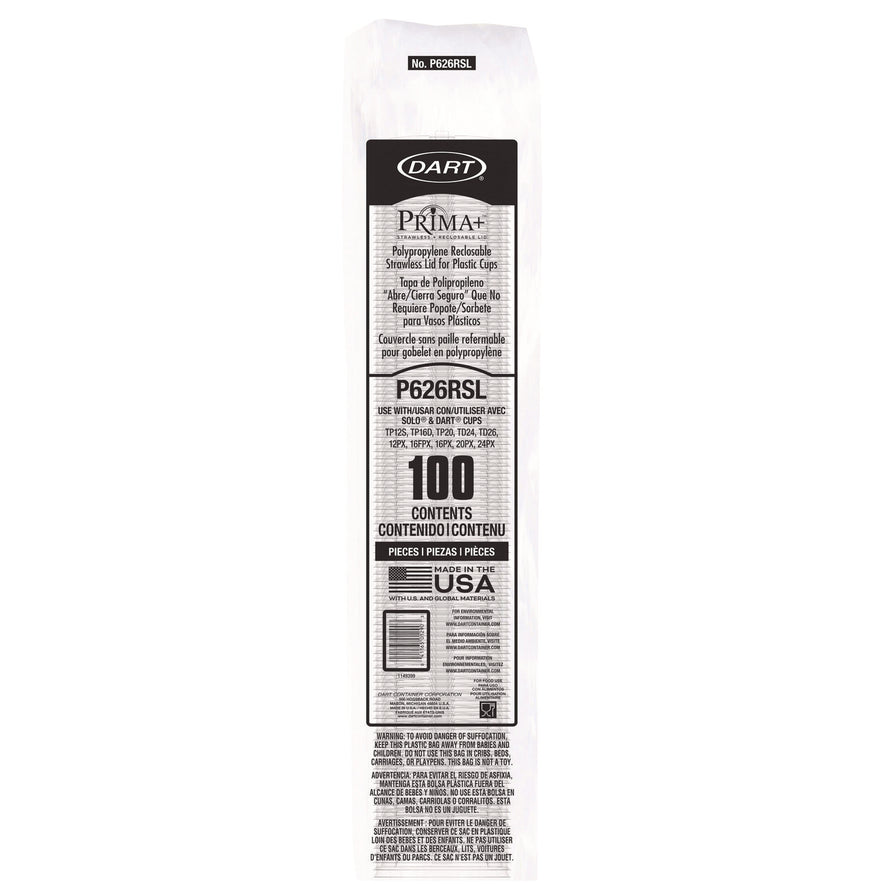 Dart Prima Strawless Plastic Lids, Fits 12 oz to 26 oz Cups, Clear, 100 Lids/Sleeve, 10 Sleeves/Carton (P626RSL)