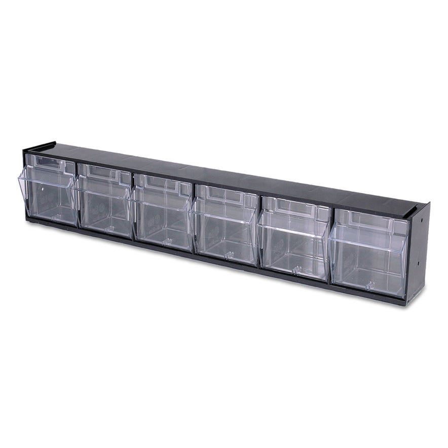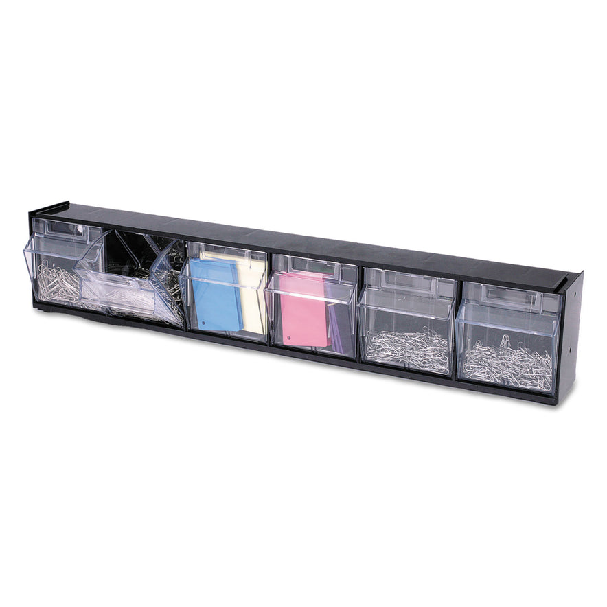 Deflecto Tilt Bin Interlocking Multi-Bin Storage Organizer, 6 Sections, 23.63" x 3.63" x 4.5", Black/Clear (20604OP)