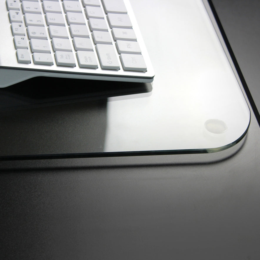 Desktex Glaciermat desk pads are manufactured from reinforced glass to provide the ultimate in desktop protection, elegance and style. Glaciermat protects from scratches, scuffs and spills and is also heat resistant to 1800°F! Guaranteed not break, crack, or discolor under normal use. Crystal clear glass allows easy viewing of notes, lists or photographs safely stored under the mat surface. The surface can also be used as a scribble pad for notes and reminders using standard dry erase pens. Ideal protector for both office or home use. Complete with silicone feet for added stability. Manufacturers 10 Year Limited Warranty. Rectangular with rounded corners - 19" x 24"