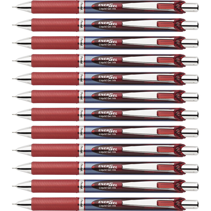 Retractable gel pen delivers the ultimate writing experience with a stainless steel tip and super-smooth blend of liquid and gel inks that glide across paper. Tip conveniently retracts to protect pockets and purses. Vivid, quick-drying ink is great for left-handed writers - no smears, no smudges, no globs. Ink formula is excellent for everyday notes yet safe for vital documents. Sleek, stylish barrel design with stainless steel accents adds to the professional look. Latex-free grip allows maximum comfort and control. Barrel and latex-free grip accents indicate color. Pen is refillable with Pentel EnerGel refill.