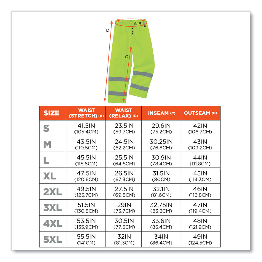 Class E thermal pants have a weatherproof polyester outer shell with a breathable 3M thinsulate lining for warmth and waterproof comfort. Features a 2" ANSI-compliant 3M Scotchlite Reflective and one right leg cargo pocket. Elastic waist with a drawstring guarantee a perfect fit and zippered leg openings offer an easy on/off. Apparel Type: Pants; Material(s): Polyester; Color(s): Lime; Color Family: Green.