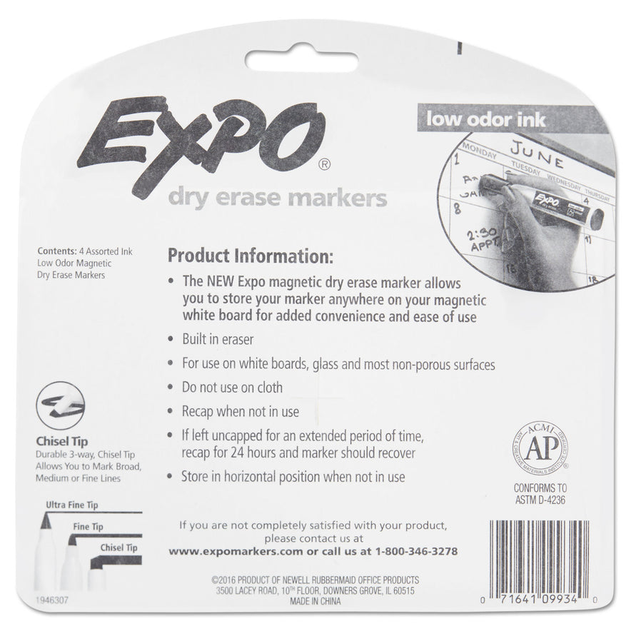 EXPO Magnetic Dry Erase Marker, Broad Chisel Tip, Assorted Colors, 4/Pack (1944728)