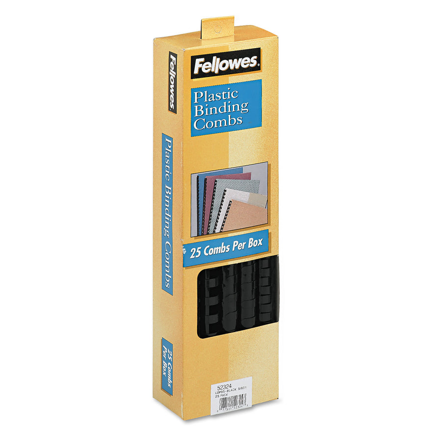 Fellowes Plastic Comb Bindings, 5/8" Diameter, 120 Sheet Capacity, Black, 25/Pack (52324)