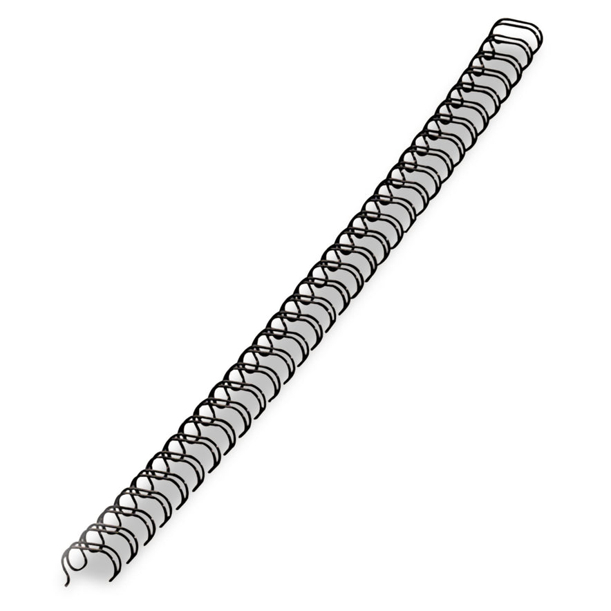 Create a professional look for bound reports and presentations. Made with durable, double-loop wire binding combs for exceptional durability. Secure closure permanently binds documents. Use with any wire-binding system with a 3:1 punching pitch and 32-hole pattern. Sheet Capacity: 100; Spine Diameter: 1/2"; Number of Rings: 32; Color(s): Black.
