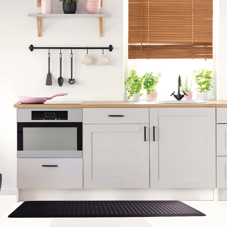The cushioned yet supportive standing surface reduces the strain on feet, legs knees and back joints that can be caused through standing for extended periods.