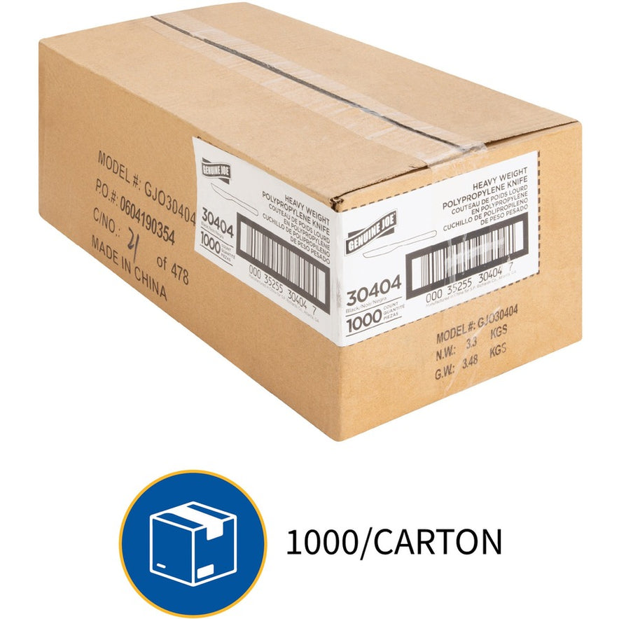 Heavyweight knives are strong enough to handle dense or heavier foods to provide a satisfying dining experience for your guests, customers and employees. Textured handle is easy to grip to provide better control. Disposable design allows quick, easy cleanup after each use. Polystyrene cutlery is perfect for office parties, breakroom use, take-out meals, catering and more.
