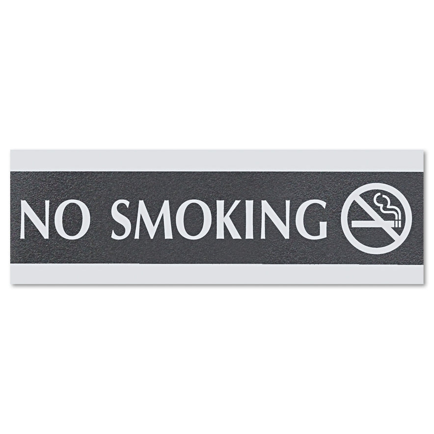 Headline Century Series Office Sign, NO SMOKING, 9 x 3, Black/Silver (4757)