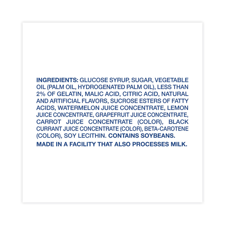 An explosion of real fruity flavors. Long lasting chewy texture. Contains real fruit juices. No artificial colors, cholesterol-free and 0 grams trans fat. Food Type: Chewy Candy; Flavor: Sweet & Sour; Capacity (Weight): 12.7 oz; Sugar Free: No.