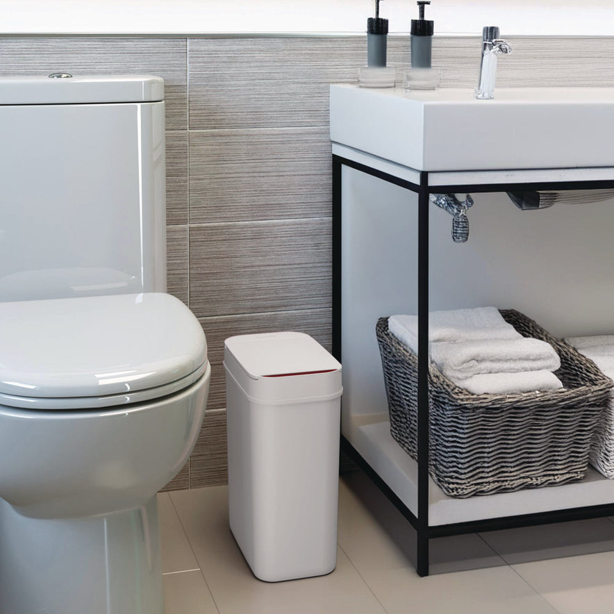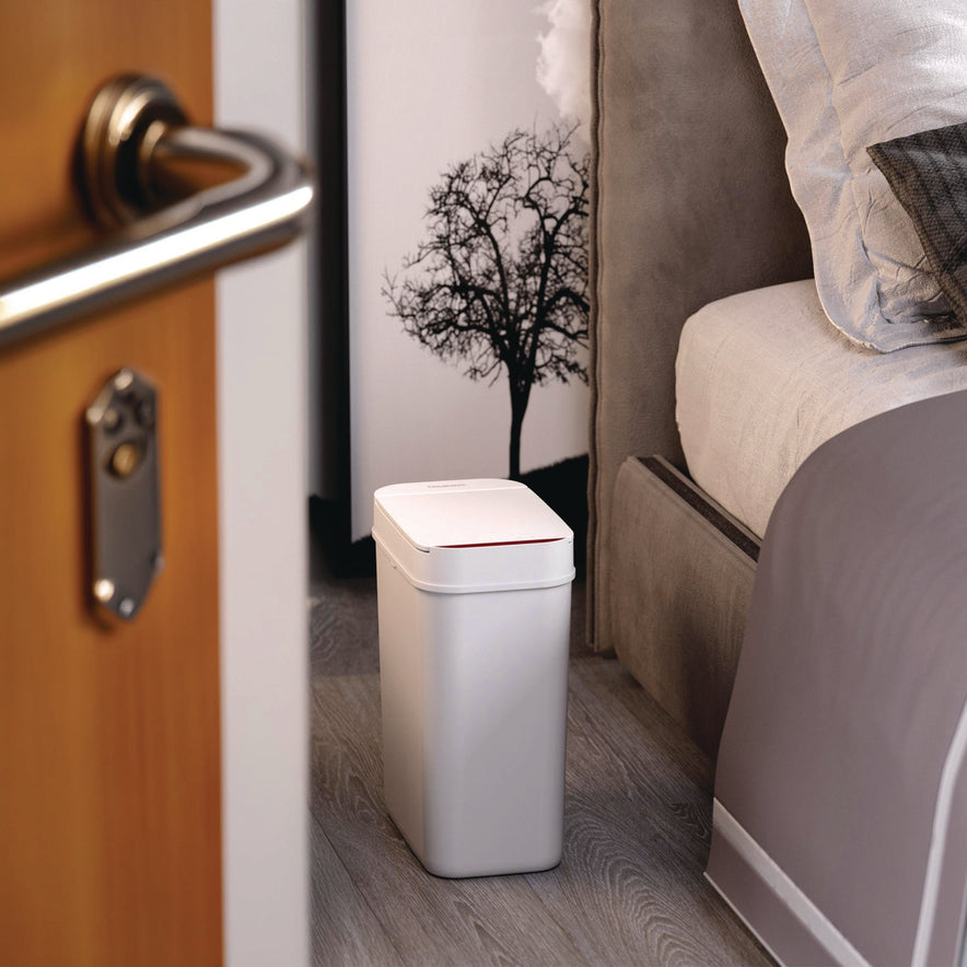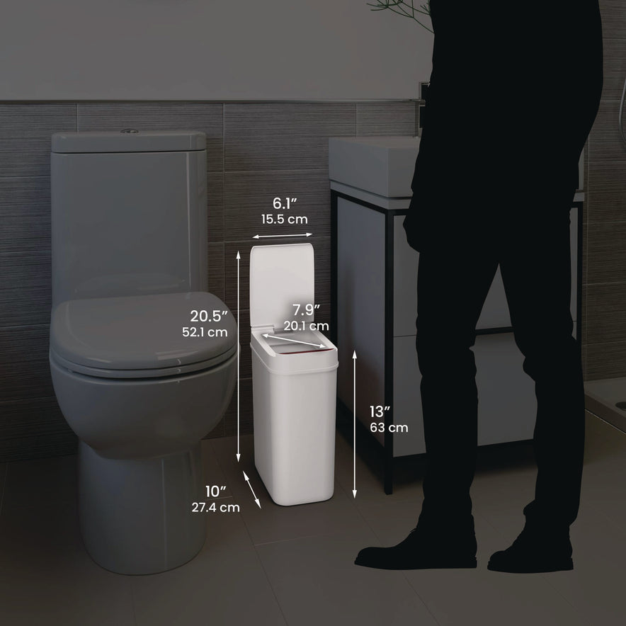 Enhance your waste disposal with our plastic sensor trash can. Featuring a 100% touchless sensor-operated lid, it ensures a hygienic and convenient experience. Constructed from dent-proof, easy-to-clean ABS plastic, this trash can is both durable and practical. Its slim, space-efficient design fits perfectly into tight spaces like under desks, next to toilets, and in breakrooms. The trash bag retainer ring keeps the bag firmly in place and ends neatly out of view. Powered by two AA size batteries (not included), the plastic body can be easily washed out with water, making maintenance a breeze. Waste Receptacle Type: Indoor All-Purpose Waste Bin; Material(s): Plastic; Application: Indoor All-Purpose Waste Disposal; Interior Volume Capacity: 3 gal.