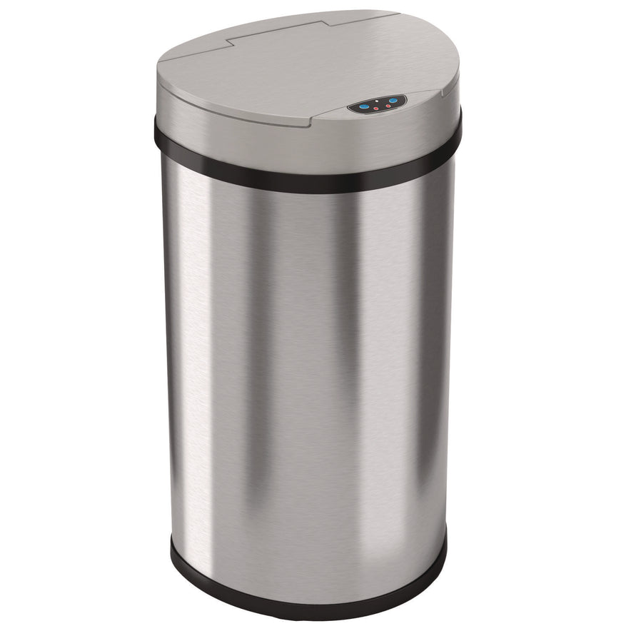 Elevate your waste management with our stainless steel sensor trash can. The 100% touch-free automatic lid ensures a hygienic and convenient disposal experience. A replaceable odor filter keeps the surrounding area fresh and clean, making it ideal for hospitality, medical, multi-family residential, and retail environments. Crafted with a durable and attractive stainless steel bin body and an ABS plastic lid, this trash can combines style with functionality. Its slim, space-saving design fits seamlessly into any setting. Powered by four AA size batteries (not included) or an optional AC adapter (sold separately), this trash can offers both convenience and efficiency for high-traffic areas. Waste Receptacle Type: Indoor All-Purpose Waste Bin; Material(s): Plastic; Stainless Steel; Application: Indoor All-Purpose Waste Disposal; Interior Volume Capacity: 13 gal.