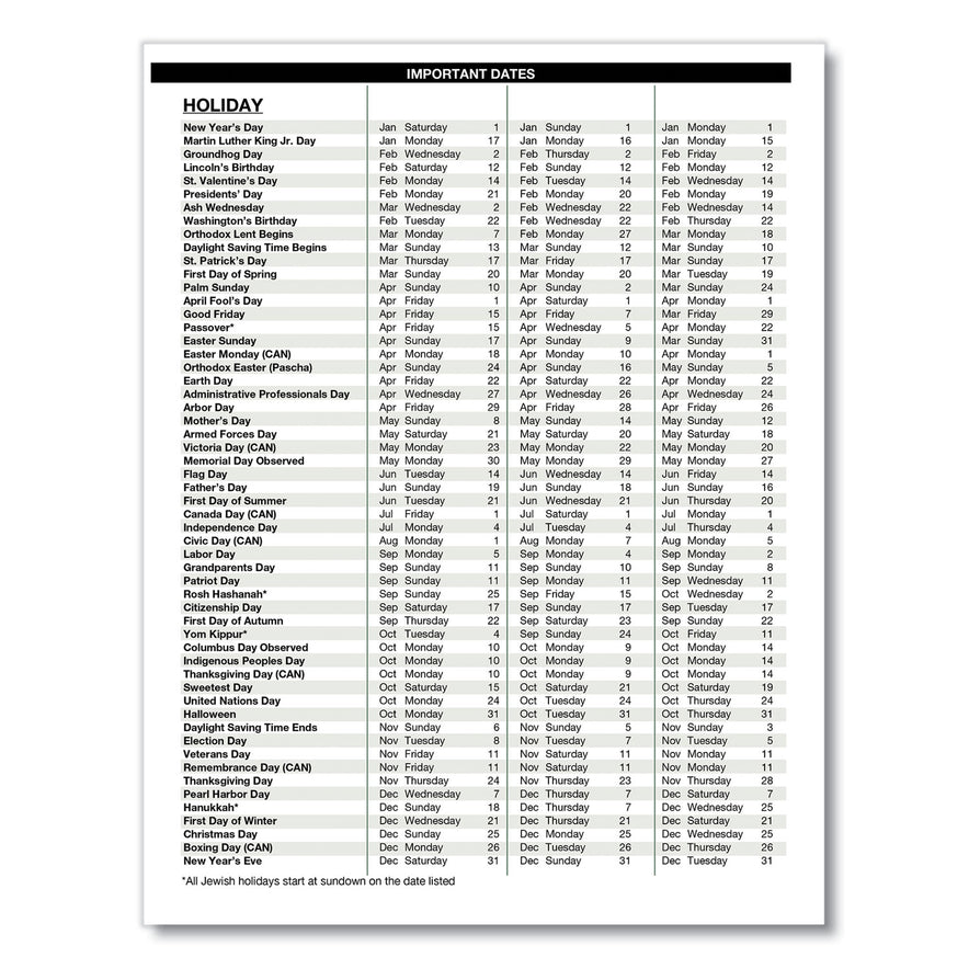 Each page has four columns, one for each person, to schedule appointments in 15-minute increments. One page per day. Eight-month reference on each spread for ease of scheduling. Includes a double-sided storage pocket. Three-year calendar reference page and important holiday dates for long-range planning. Made entirely of recycled materials. Dated/Undated: Dated; Calendar Format: Daily; Calendar Spread Format: One Day per Page; Edition Year: 2025.