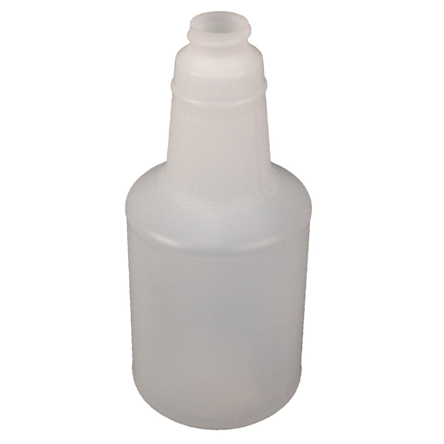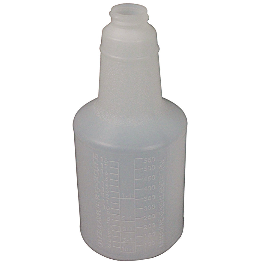 These plastic bottles are customizable, by way of UV silk screening, to fit a user's needs. The 28/400 mm neck finish pairs with a variety of popular trigger sprayers and the graduations allow for easy measuring and filling. Made with FDA-compliant and recyclable high density polyethylene to make certain the bottles are the right choice during and after the job. Material(s): HDPE; Color(s): Clear; Capacity (Volume): 24 oz; For Use With: Impact 58062491.