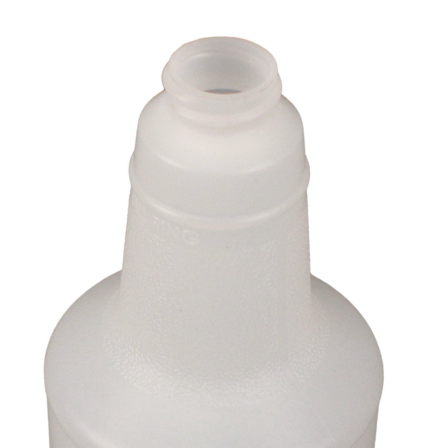 These plastic bottles are customizable, by way of UV silk screening, to fit a user's needs. The 28/400 mm neck finish pairs with a variety of popular trigger sprayers and the graduations allow for easy measuring and filling. Made with FDA-compliant and recyclable high density polyethylene to make certain the bottles are the right choice during and after the job. Material(s): HDPE; Color(s): Clear; Capacity (Volume): 32 oz; For Use With: Impact 58062491, 59062491, 60192491.
