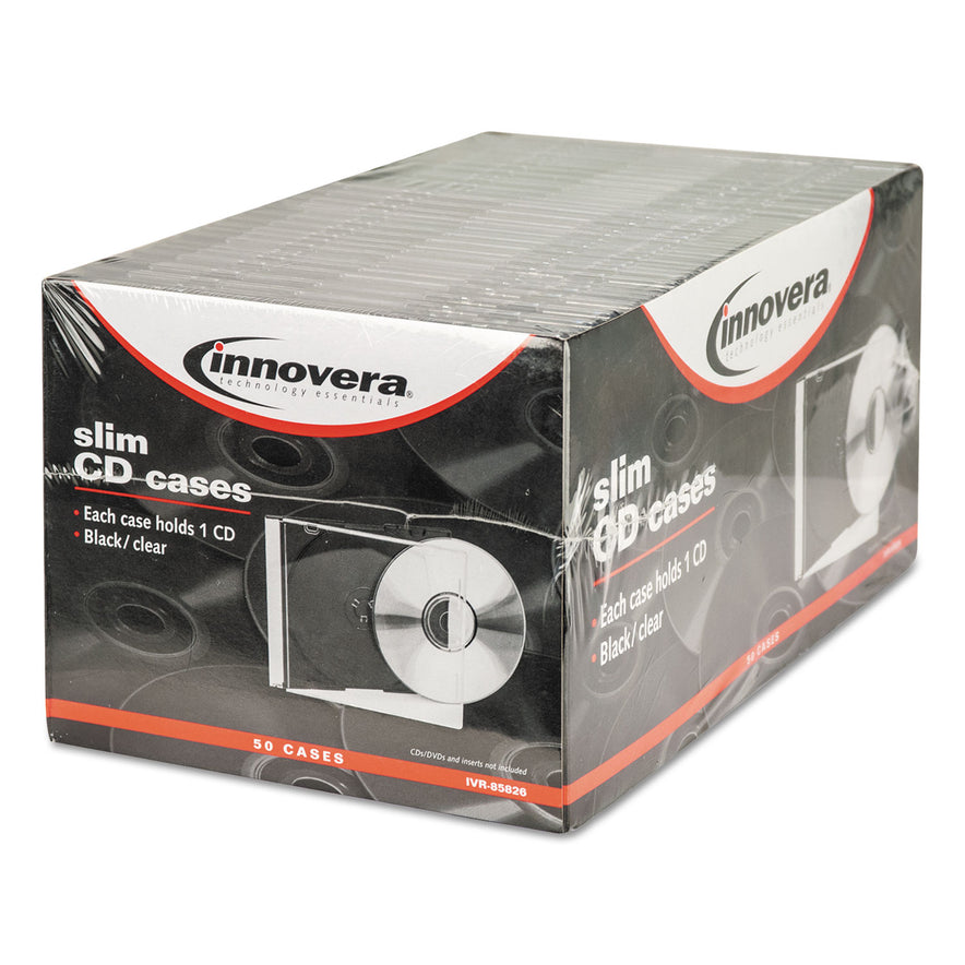 Innovera CD/DVD Slim Jewel Cases, Clear/Black, 50/Pack (85826)