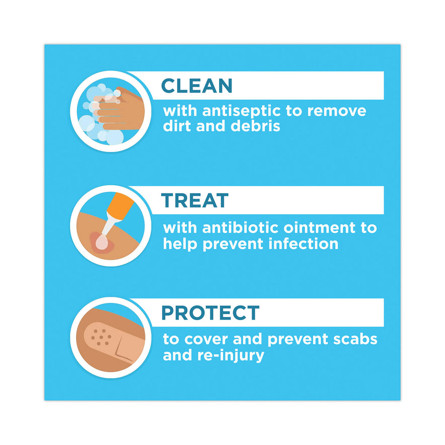 Additional wound care supplies include two 0.75" x 3" Band-Aid Brand Flexible Fabric Adhesive Bandages and four 0.63" x 2.25" Band-Aid Brand Flexible Fabric Adhesive Bandages.