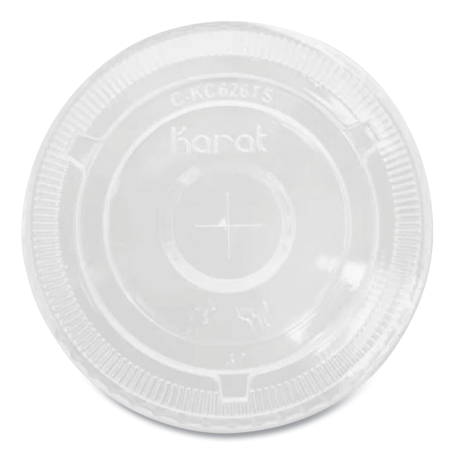 Karat PET lids are durable, high clarity, and crack resistant. They are also recyclable and BPA free. Compatible with Karat Cold Cups. Flat Lid with Straw Slot. Fits: 32 oz Cold Cups; Material(s): PET; Color(s): Clear; Color Family: Clear.