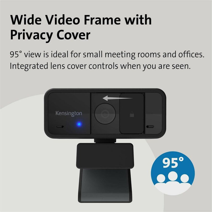 W1050 Fixed Focus Wide Angle Webcam is a professional device that delivers high-quality video with 1080p resolution. Omnidirectional microphones with noise-reduction technology ensure you sound professional in meetings. Optimal webcam helps you look and sound your best on video conferencing applications. Large sensor improves low-light imaging during presentations. Fixed-focus glass lens ensures you are always in focus. Lens manually adjusts up to 37 degrees vertically and 360 degrees horizontally for the best camera angle. 95-degree, diagonal viewing is perfect for small team meetings, teaching lessons or presenting. Kensington Konnect software simplifies setting customization. Electronic pan, tilt and zoom ease focal-point changes between you, your team or your background. Create a tailored setup by combining with other Kensington video conferencing accessories such as a desk stand or ring light (none included).