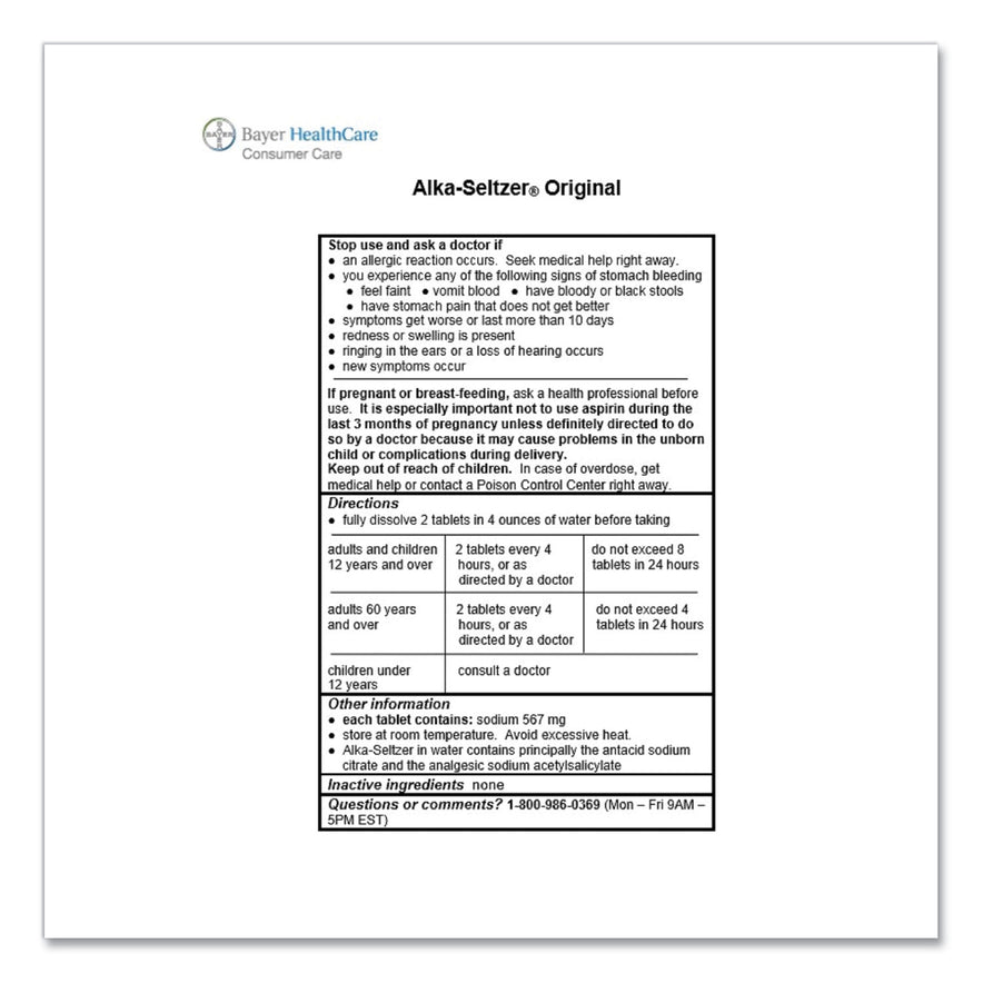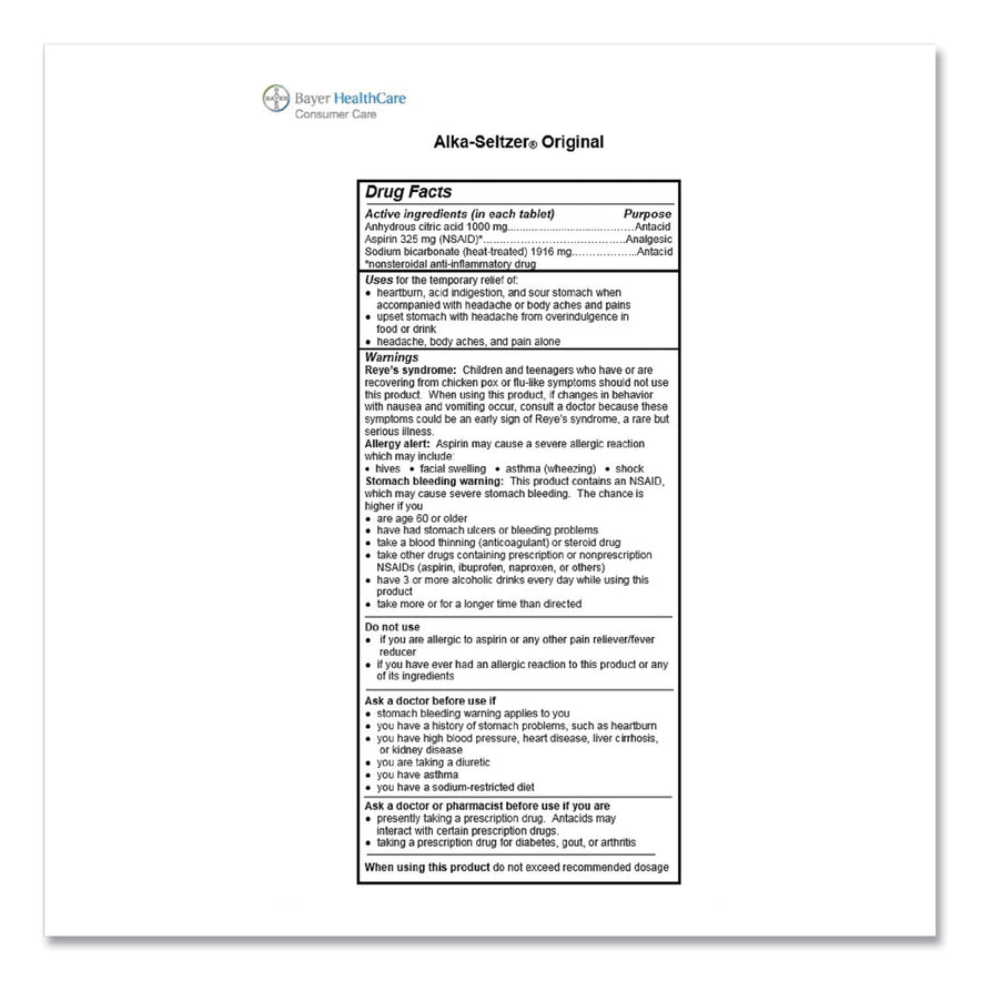 Alka-Seltzer Original Stomach Relief and Pain Relief Medicine, 15/Box (51060)