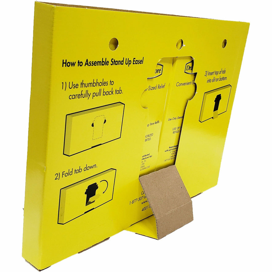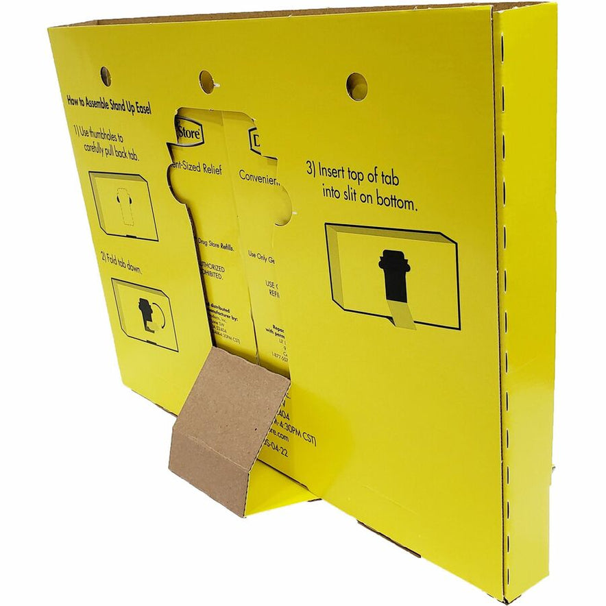 Medicine Dispenser keeps your team feeling their best for improved productivity and a happier team. Dispenser comes pre-loaded with Advil (30 doses), Aleve (30 doses), Tylenol Extra Strength Caplets (30 doses) and Alka-Seltzer (15 doses). Display sets up easily with a built-in easel tab. Refillable dispenser is made of corrugated cardboard. Refill with Lil' Drugstore Refills boxes of your choice.