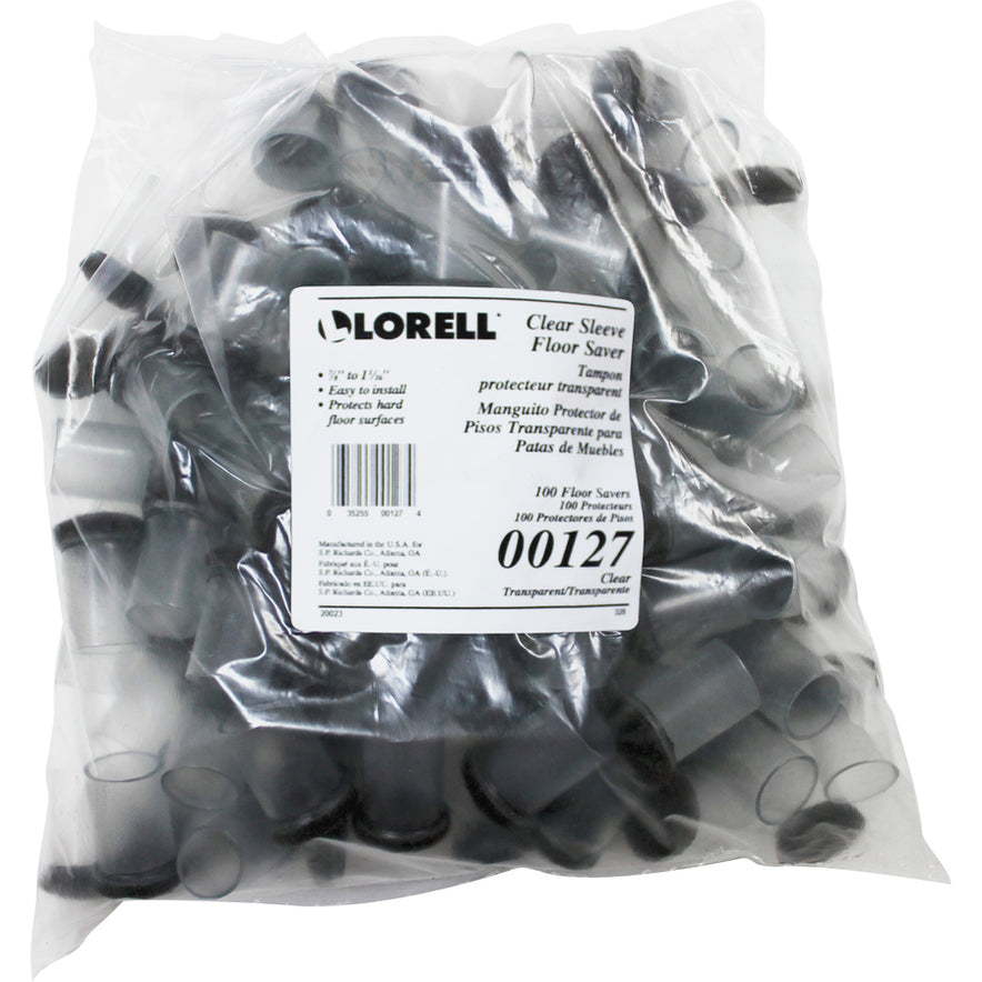 Floor protectors prevent damage normally caused by moving furniture. Transparent, flexible sleeve securely conforms to the size and shape of chair or table legs, eliminating the need for adhesive. The cushioned felt tip lasts longer than standard felt pads, dampens noise and distributes weight evenly for better furniture wear. They are perfect for restaurants, hotels and areas where esthetics are essential. One design fits multiple shapes and sizes. Clear Sleeve Floor Protectors are recommended for all hard floor surfaces and fit 7/8" to 1-1/16" round legs or 3/4" square legs.