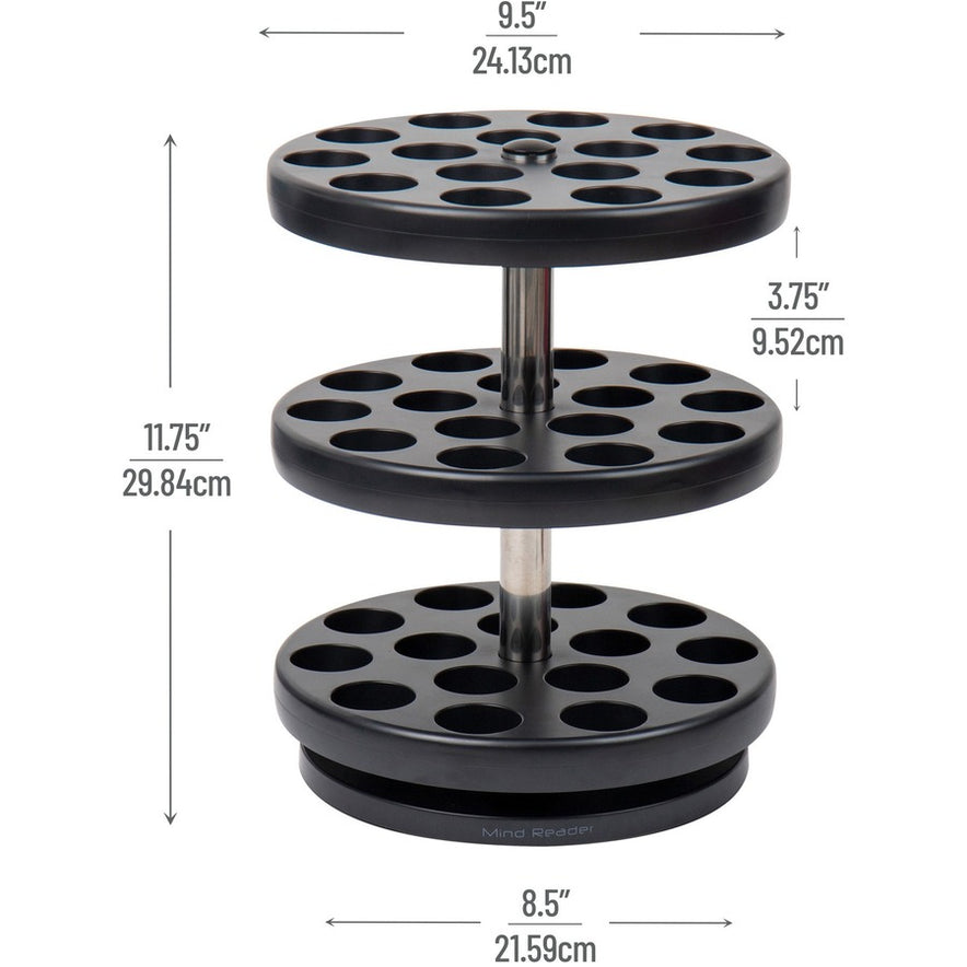Anchor 3-Tier Coffee Pod Carousel organizes everyone's favorite flavors while minimizing messes. Three rotating tiers store up to 15 single-serve pods on each tier for a total capacity of 45 pods. Arrange pods in multiple ways to suit various tastes and preferences. Carousel is perfect for your breakroom, reception area or hospitality suite. Heavy-duty plastic stands up to everyday use and cleans quickly with the help of a damp cloth. Neat, simple design elevates your space with a minimalist touch for a delightful coffee-drinking experience. Rubber grips on the base keep the rotating carousel in place.