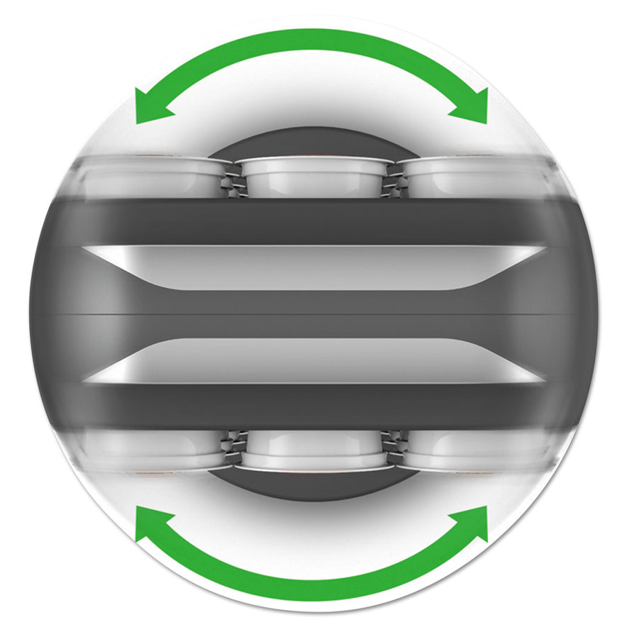 Provide convenient access to delicious single-serve coffee pods with an easy to use coffee pod carousel. Holds 30 single-serve coffee pods, with each side displaying 15 pods. Open view allows you to choose your favorite flavor. Spins easily on a secure base. Self-locking system keeps pods in place even at 90 tilt. Bottom rubber grippers keep carousel in place. Width: 6.88"; Depth: 6.88"; Height: 12.63"; Compartments: 30.