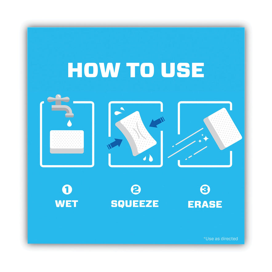 Disposable, soft pads erase set-in dirt and grime quickly and easily. They remove scuff marks, dirt and tough crayon marks from floors, walls and doors. Safe to use; no gloves or chemicals necessary. Sponge Type: Scrub Sponge; Material(s): Foam; Shape: Rectangle; Width: 4.6".