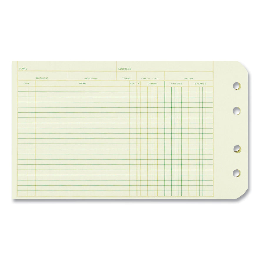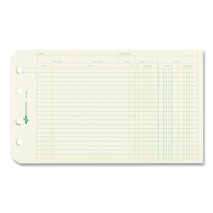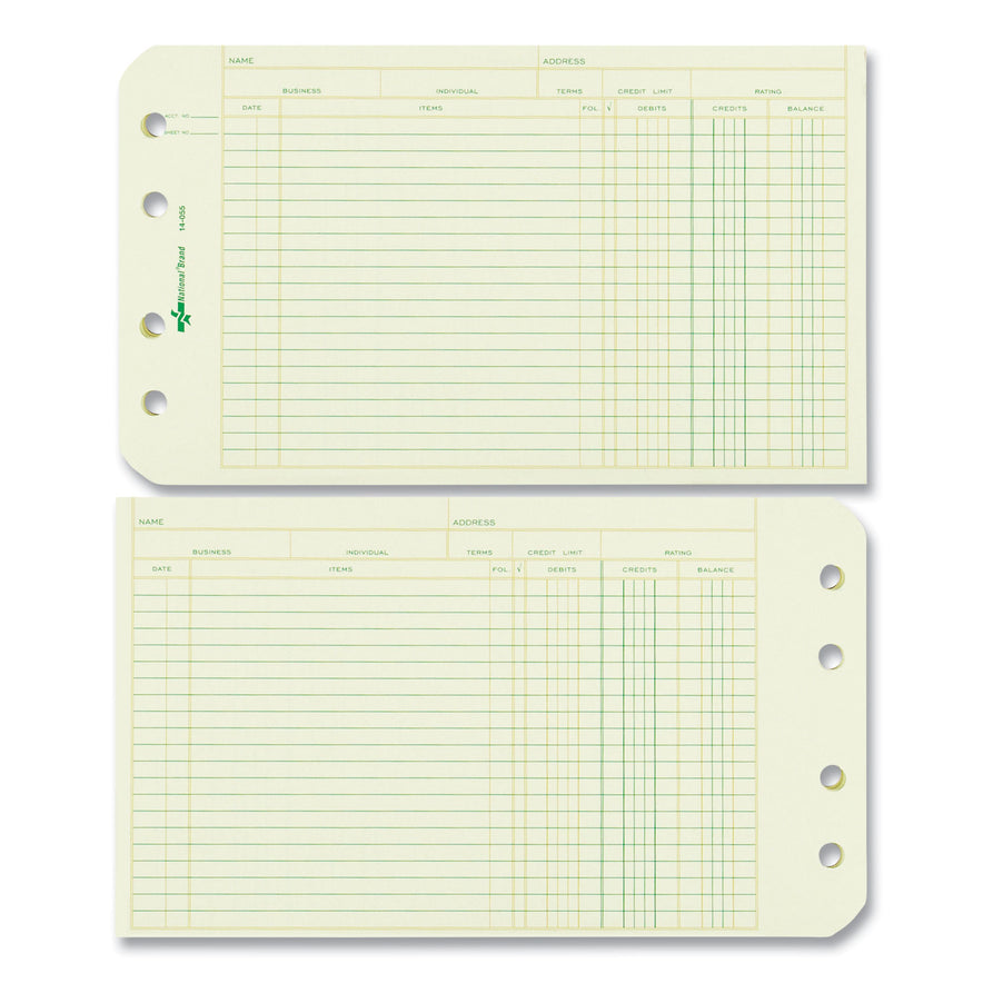 Forms are set up for accounts payable and accounts receivable with debit, credit and balance columns. Easy-to-use sheets make performing accounting tasks easier and less time consuming. Green paper color is easy on the eyes. For use with National 63453 Four-Ring Ledger Binder (sold separately). Sheet Size: 5 x 8.5; Column Headers: Debit; Credit; Balance; For Use With: National 63453; Ledger Sheet Refill Type: Four-Ring Ledger Binder.