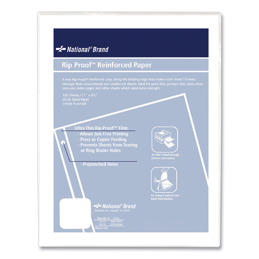 National Paper Rip Proof Reinforced Filler Paper, 3-Hole, 8.5 x 11, Unruled, 100/Pack (20121)