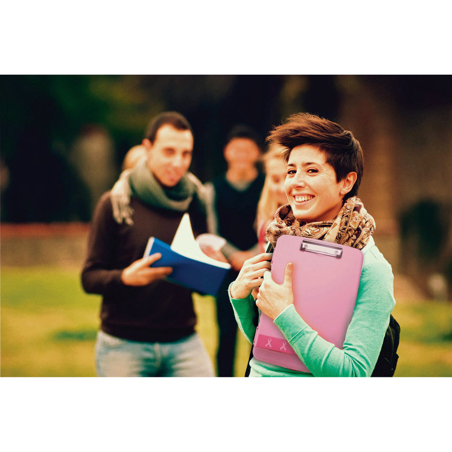 Slim Clipboard Storage Box is slender enough to fit into most briefcases but offers ample storage space for papers, forms, notepads and more. Pink color with pink ribbon supports breast cancer awareness. Separate storage compartment organizes your pens and pencils. Low-profile, steel clip provides a strong grip to secure papers for quick reference. More from the Manufacturer