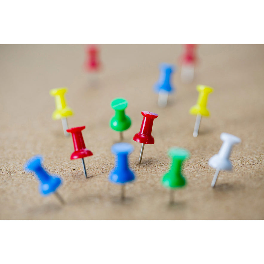Plastic-headed pushpins are precision-crafted with 3/8" hardened steel points for lasting strength. They are perfect for tacking up pictures, artwork, memos and more. Pushpins are as easy to pull out as they are to push in. Heads come in assorted colors and are 1/4" in diameter and 1/2" in length. More from the Manufacturer