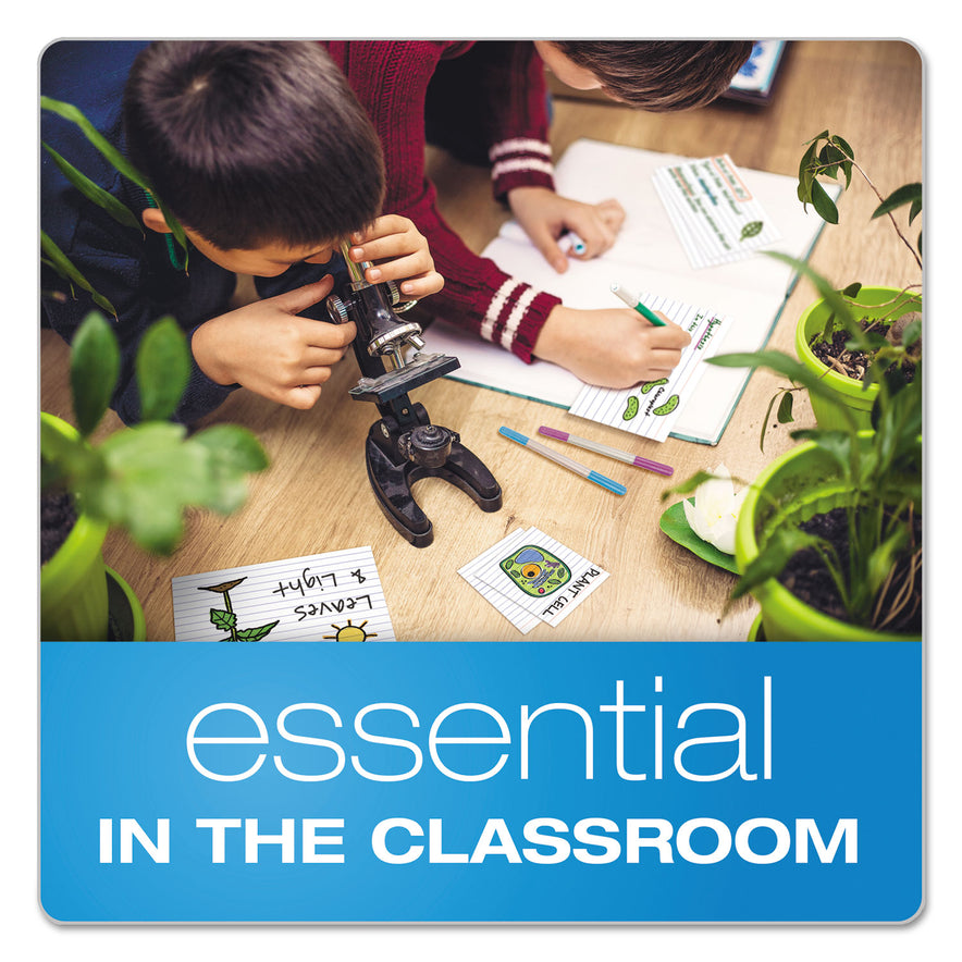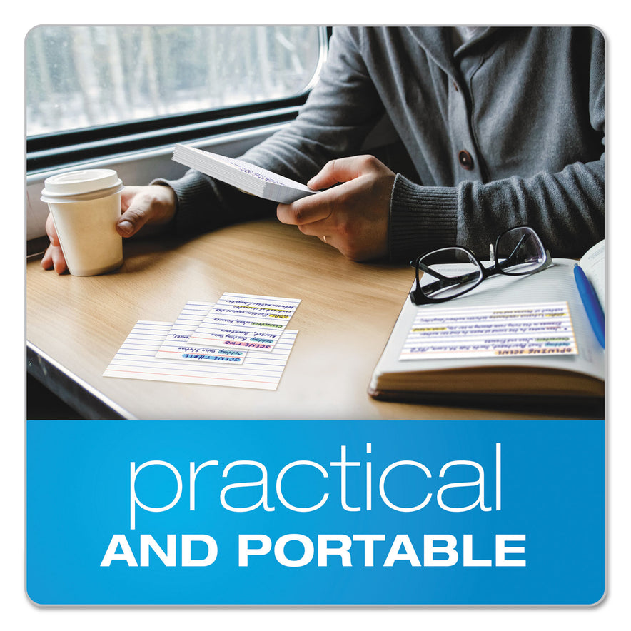 Easy to handle and store. Durable card stock. Ruled on one side. Ideal for short notes, flash cards, study aids and address and telephone numbers. Ruling: Ruled; Card Size: 3 x 2.5; Color(s): White; Color Family: White.