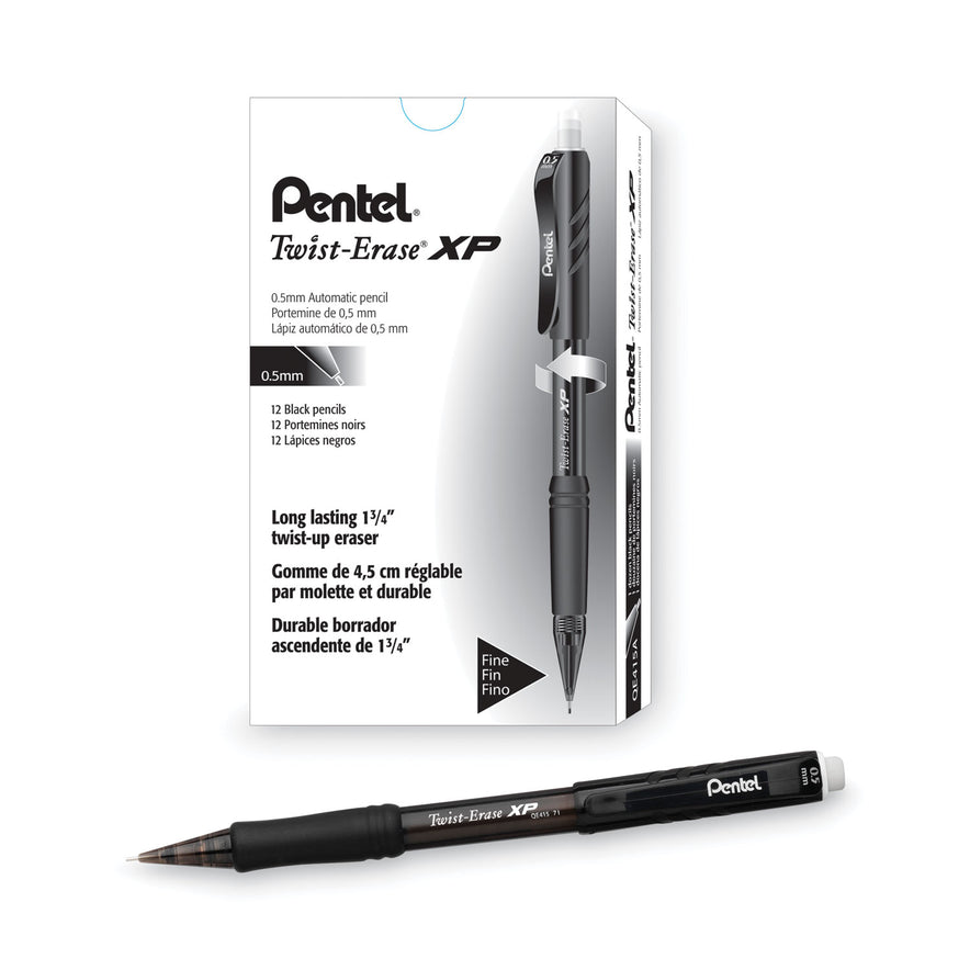 Pentel Twist-Erase EXPRESS Mechanical Pencil, 0.5 mm, HB (#2), Black Lead, Black Barrel, Dozen (QE415A)