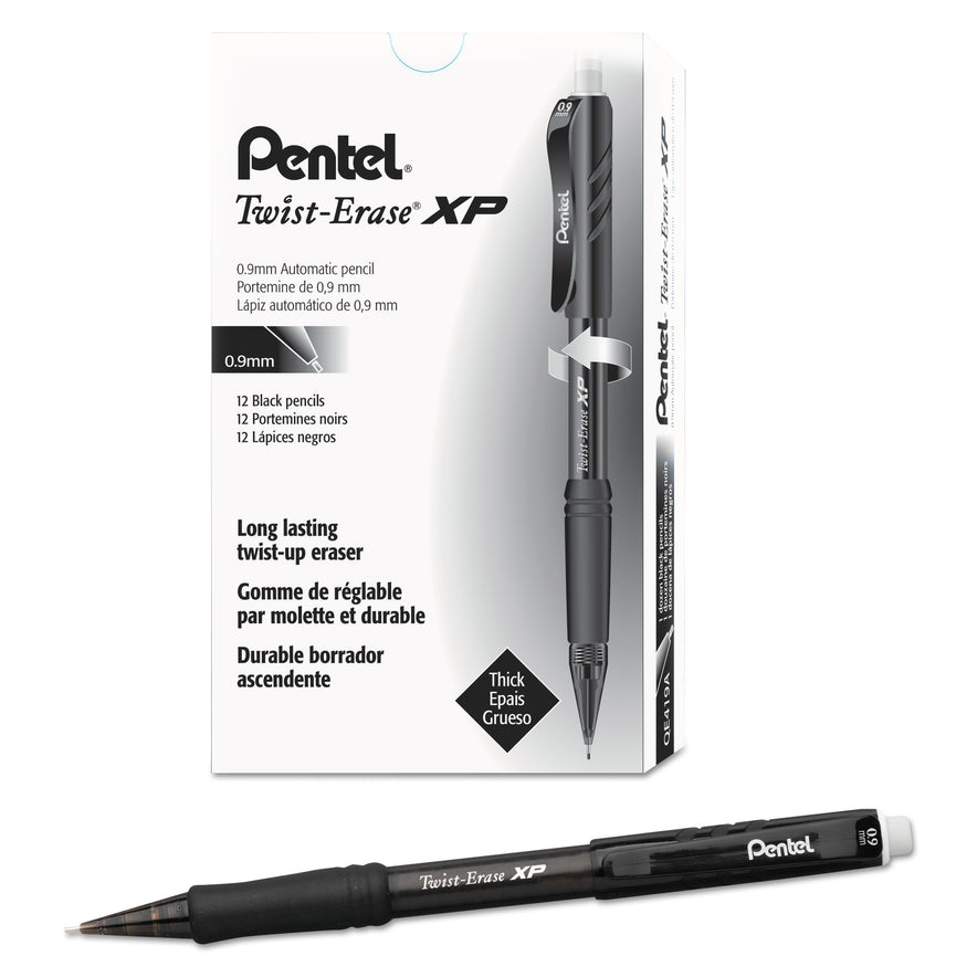 Pentel Twist-Erase EXPRESS Mechanical Pencil, 0.9 mm, HB (#2), Black Lead, Black Barrel, Dozen (QE419A)