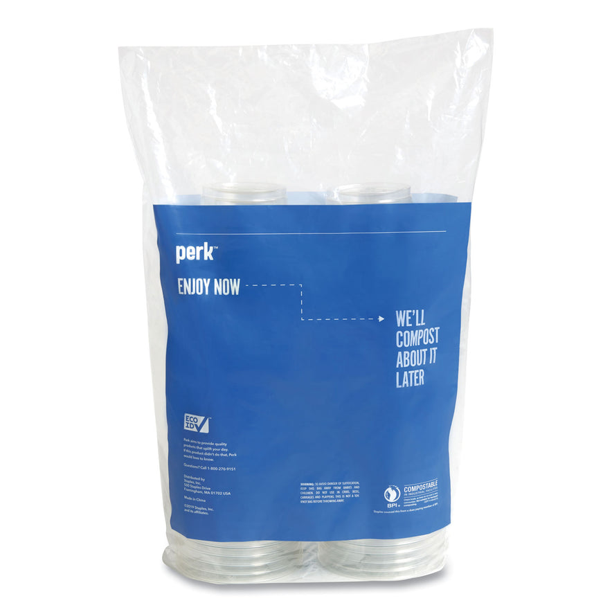Perk Eco-ID Compostable PLA Corn Plastic Cold Cups, 16 oz, Clear/Green, 50/Pack, 6 Packs/Carton (24394128)