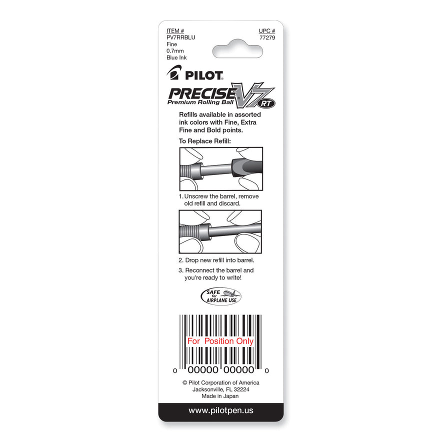 Refill for Pilot Precise V7 RT Rolling Ball, Fine Conical Tip, Blue Ink, 2/Pack (77279)