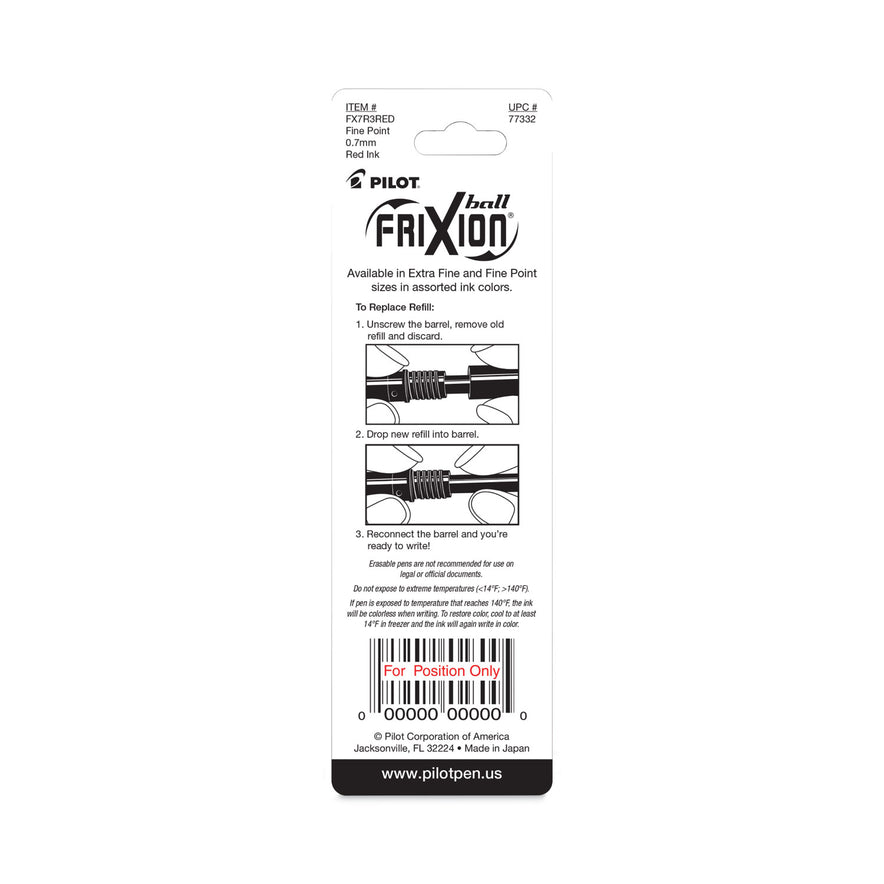 Refill for Pilot FriXion Erasable, FriXion Ball, FriXion Clicker and FriXion LX Gel Ink Pens, Fine Tip, Red Ink, 3/Pack (77332)