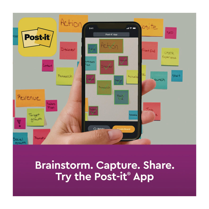 Summer colors at their most warm and invitingcapture happy memories that will last all year. Super Sticky adhesive provides twice the sticking power, yet always ensures that your notes will remove cleanly, no matter where you place them. Stick and re-stick to just about any flat surface: doors, windows, mirrors, walls and more to make sure your thoughts get noticed. If working or learning remotely, be sure to download the free Post-it App to leverage the app's features to help you capture ideas, track tasks, create colorful calendars and more. The app also allows you to share everything between your sync'd devices as well as across a wide variety of platforms: Dropbox, Trello, PowerPoint and more. Pad Type: Super-Sticky; Shape: Square; Color(s): Summer Joy Collection; Color Family: Multicolor.