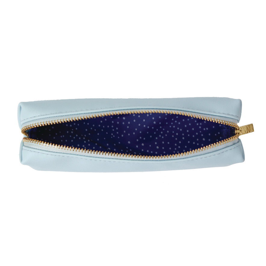 Pencil cases are an everyday essential for organizing pens and pencils. The compact design makes it easy to chuck into college or work bags to keep your pens and pencils organized. The pencil case is compact in size measuring 2" x 7.9", an awesome size for a range of pens and pencils. The slim pencil case is lightweight yet durable and is great for school or professional settings. The pencil case is made from faux leather and includes a luxurious gold zip that is easy to open and close. People expect more from Pukka Pad products and that's what they get. Number of Compartments: 1; Color(s): Blue; Color Family: Blue; Material(s): Faux Leather; Metal; Nylon.