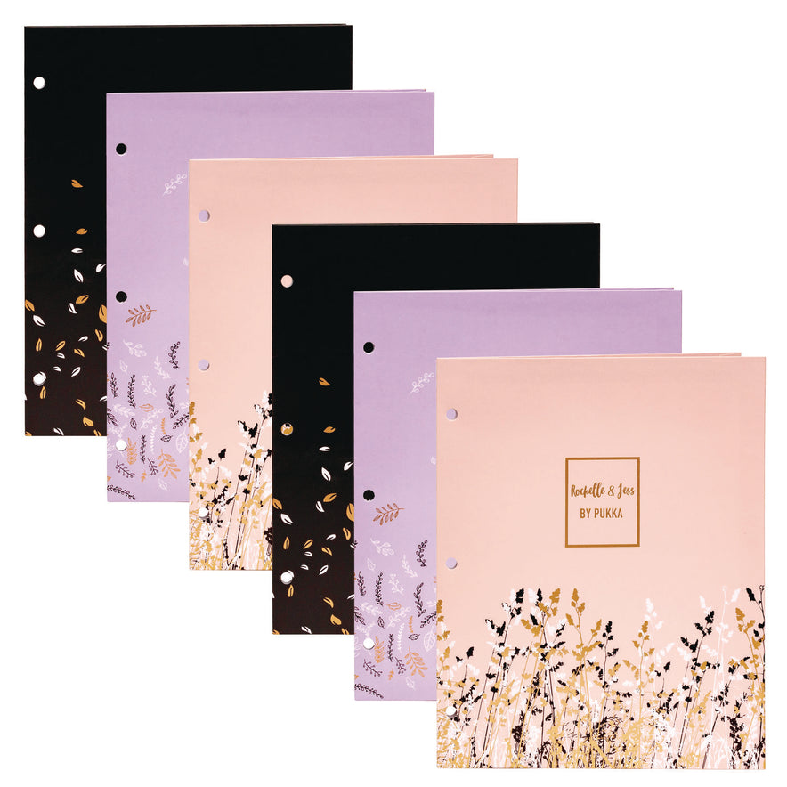 The pocket portfolio is three-hole punched and can fit into standard three-ring binders. Made from a strong, high-quality 250 gsm cardstock, the portfolio includes two storage pockets that can fit A4 and letter-size documents. These are perfect for students and working professionals who want to organize their documents. People expect more from PUKKA PAD products and that's what they get. Front Cover Color(s): Black; Lilac; Pink; Color Family: Multicolor; Back Cover Color(s): Assorted; Sheet Size: 9.6 x 11.9.
