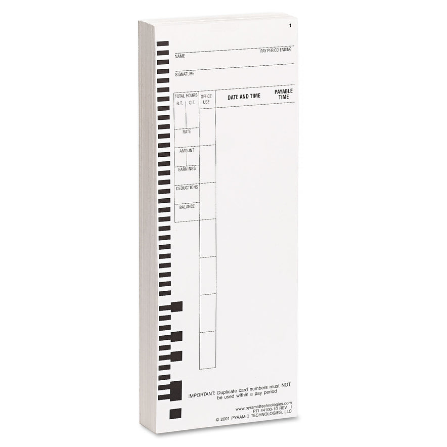 Time Clock Cards for Pyramid Technologies 4000, One Side, 3.5 x 8.5, 100/Pack (4410010)