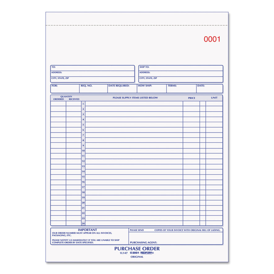 Rediform Purchase Order Book, 17 Lines, Three-Part Carbonless, 8.5 x 11, 50 Forms Total (1L147)