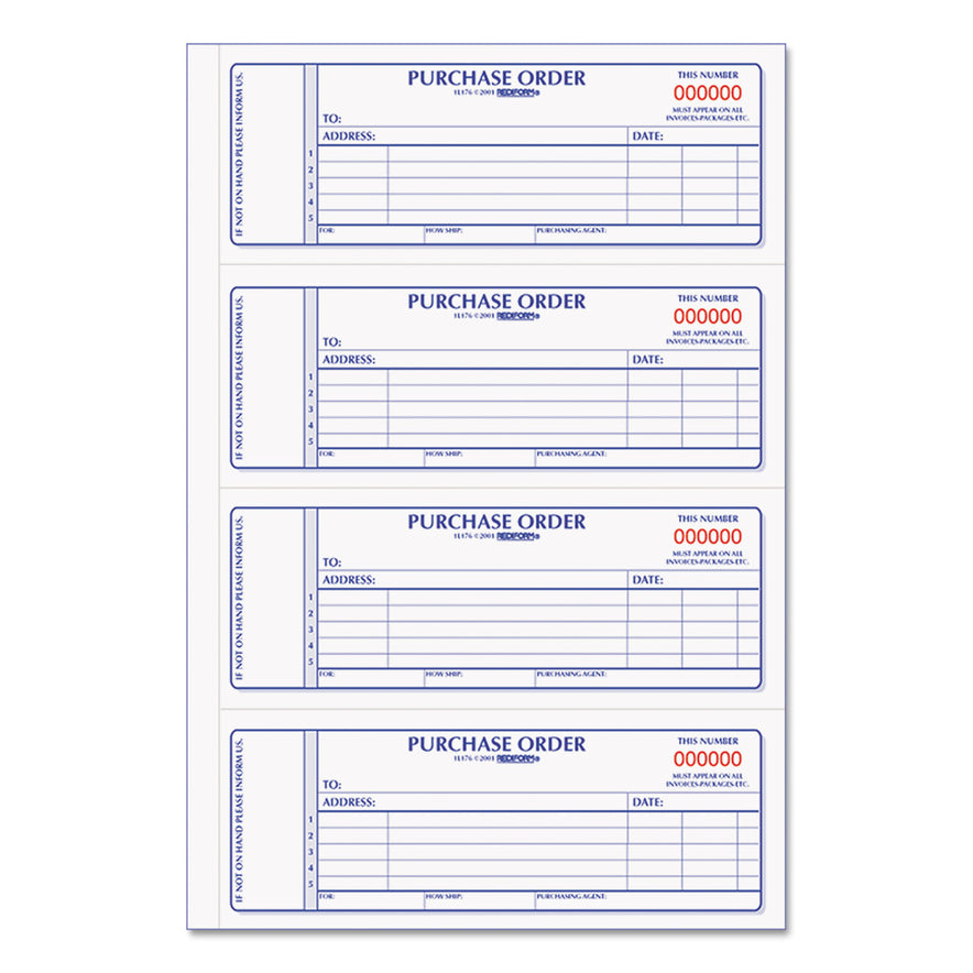 Rediform Purchase Order Book, 5 Lines, Two-Part Carbonless, 7 x 2.75, 4 Forms/Sheet, 400 Forms Total (1L176)