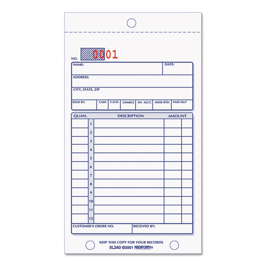 Rediform Sales Book, 12 Lines, Two-Part Carbonless, 3.63 x 6.38, 50 Forms Total (5L240)