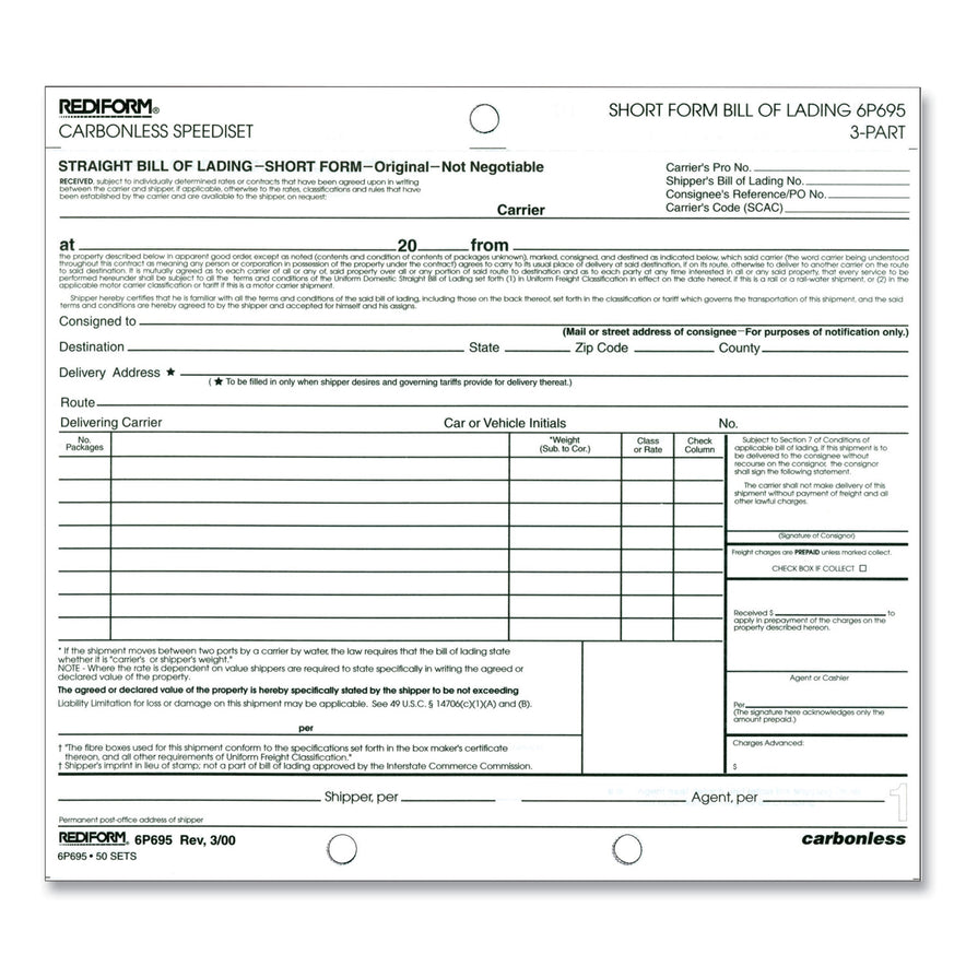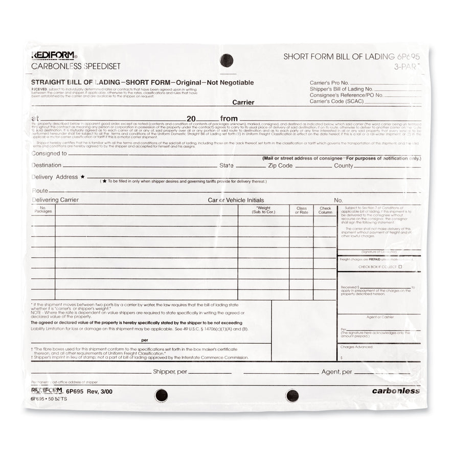Rediform Speediset Bill of Lading, Short Form, Three-Part Carbonless, 7 x 8.5, 50 Forms Total (6P695)