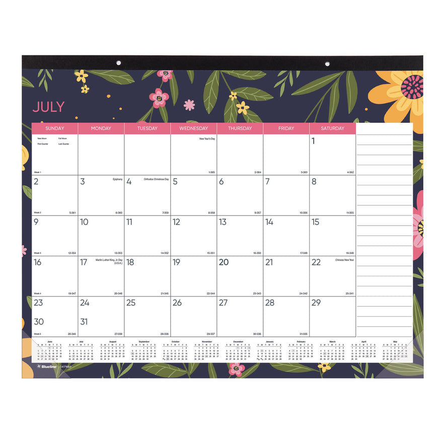 Blueline Academic 18-Month Desk Pad Calendar, 22 x 17, White/Multicolor Sheets, Black Headband, 18-Month (July to Dec): 2024 to 2025 (CA1716BD)